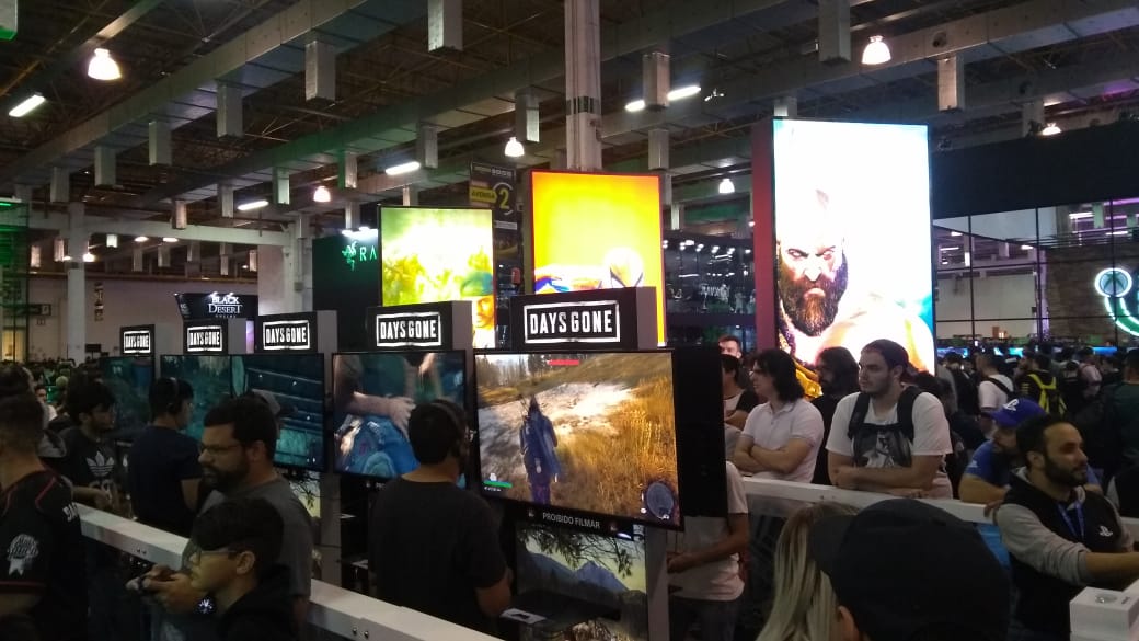 A galera estava ansiosa pra conferir os lançamentos que já possuem data confirmada de lançamento, mas que se tornou um desafio, quem queria conferir os futuros lançamentos como Resident Evil 2, Devil May Cry 5, Days Gone, Kingdom Hearts 3 entre outros títulos, tinha que enfrentar uma fila enorme, assim você tinha que escolher: ou andava pelo evento para conferia os outros estandes ou enfrentava a fila para jogar, aconselho que quem comprou o ingresso para um dia, que chegue cedo e dê prioridade no jogo que quer jogar pois a concorrência para esses títulos é enorme.